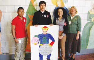 PERTH AMBOY – Central Jersey Federal Credit Union would like to thank Mrs. Massopust’s art class at Perth Amboy High School for taking part in designing our Credit Union Superhero for National Credit Union Youth Month. A special Thank You goes out to Edgar Zamudio (one of Mrs. Massopust’s students) for designing and drawing our chosen Superhero. (L to R) Javier Mendez, Edgar Zamudio, Lisbeth Polaco, Mrs. Marcella Massopust.