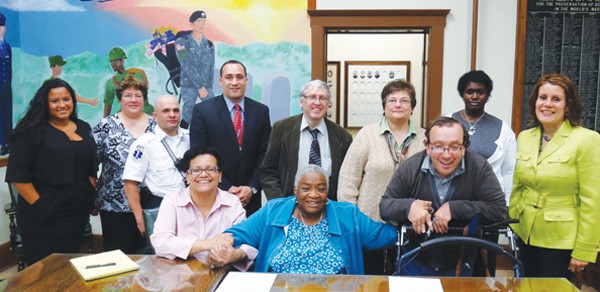 (L to R) First row: Commissioners Lourdes Illa, Dorothy Daniel, Patrick Miller. Second Row: Commissioners Elizabeth Clark, Jo Ann Fulop, Abraham Pitre, Nephtaly Cordona, Herschel Chomsky, Venus Majeski, and Sharee Daniel with Mayor Wilda Diaz