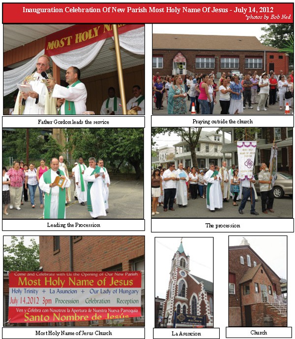 PERTH AMBOY – On Saturday, July 14, the Inauguration Celebration was held to commemorate the new Roman Catholic Parish of Most Holy Name of Jesus, or Parroquia Santo Nombre de Jesus, which was created by Bishop Paul Bootkoski on July 1, 2012, from the merger of three Parishes, Holy Trinity, La Asuncion and Our Lady of Hungary. While the merger does legally dissolve the three separate Parish entities, nevertheless, all three Church buildings – Holy Trinity, La Asuncion and Our Lady of Hungary, will retain their current names and remain open year-round as active Worship Sites for the celebration of Masses and the Sacraments. Holy Trinity is located on the corner of Lawrie and Johnstone; La Asuncion is located at 777 Cortlandt Street and Our Lady of Hungary is located on 697 Cortlandt Street.