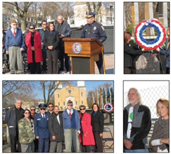 PERTH AMBOY – Perth Amboy honored its veterans on Veterans Day, Sunday, November 11, 2012 at the War Memorial. It was uncertain that the ceremony would take place due to the damage inflicted by Hurricane Sandy. Due to efforts by volunteers, the debris was cleared in time for the service to take place. Photo 1) Police Chief Benny Ruiz speaks before City Officials and those in attendance. Photo 2) The laying of the wreath at the Memorial. Photo 3) Veterans, Clergy and Officials pose after the ceremony. Photo 4.) Residents Alan Silber and Noelle Zaleski watch the ceremony.
