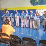 - FORDS – Bishop Booktowski’s visit to Our Lady of Peace School in Fords on January 29th. The student body hosted a Geography Bee for the entire school and Bishop Booktowski called “What in The World”. Guests included Monsignor Andy Szaroleta the Pastor of Our Lady of Peace and Mrs. Fran Comiskey, the school Principal.