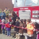 - Mayor Diaz prepares to cut ribbon with assistance of future firefighters