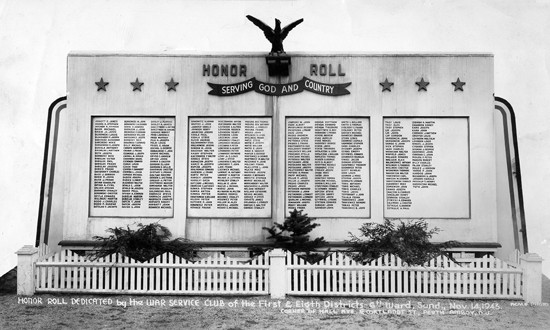 PERTH AMBOY — Honor Roll dedicated by War Service Club of First & Eighth Districts, Sixth Ward, Sunday, November 14, 1943. Corner of Hall Avenue and Cortlandt Street.