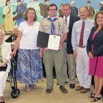 - William David Szilagyi was presented with a proclamation honoring him for achieving the honor of Eagle Scout. (L to R) Isabelle Kausch, Kathy Szilagyi, William David Szilagyi, David Szilagyi, Councilman Bill Petrick & Mayor Wilda Diaz.