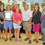 - The Raritan Bay Paddlers Club were presented with a proclamation for adopting the South Second Street Beach, cleaning up garbage on the beach. (L to R) Tracy Jordan, Cynthia LoCastro, Gregory Switzer, Bill Schultz, Lorraine McCartney.