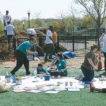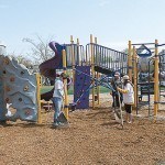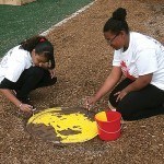 - Jersey Cares volunteers spread mulch on the playground