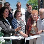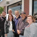 - The Mayor joins the Barge owners, and those who helped rebuild the patio, for the ribbon cutting.