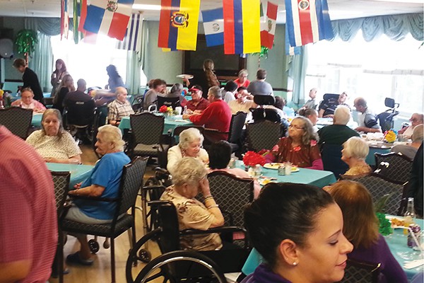 - Flags from Hispanic Nations decorate the ceiling of the dining area