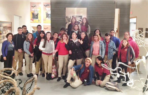 Over 30 students, a guidance counselor and their art teacher, Olga Bautista, also the Board of Education representative on the Council, spent the day viewing a full gallery exhibit of the Visual Arts Thesis projects from the graduating senior class. The students viewed paintings, photography, sculpture, graphic designs and murals.  All of the projects used art as a way to deliver a message unique to each artist.  This year’s exhibition theme was “Ladies Night” and actually included a custom-designed Neon sign created by the graduates.