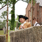 Anton Massopust (as a Revolutionary soldier) informs students about Perth Amboy being the Colonial Capital of New Jersey. John Dyke portrays William Dunlap.