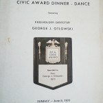 The first recipient of Civic Award was George J. Otlowski. He was honored on June 6, 1971 when he was a Freeholder Director. His son, George Otlowski, Jr. was bestowed with the same honor in May 2014.