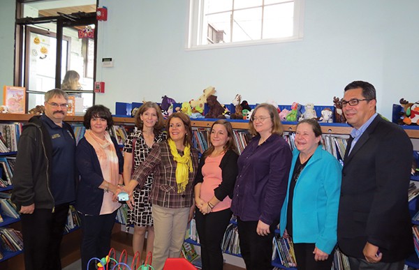 Diaz poses with Library Staff including current and former Director & City Officials