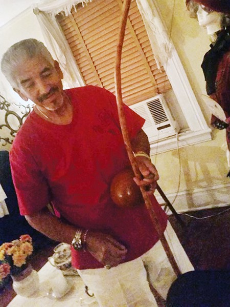 Ricardo Solis, artist, percussionist on the the berimbau is a single-string percussion instrument, a musical bow, from Brazi