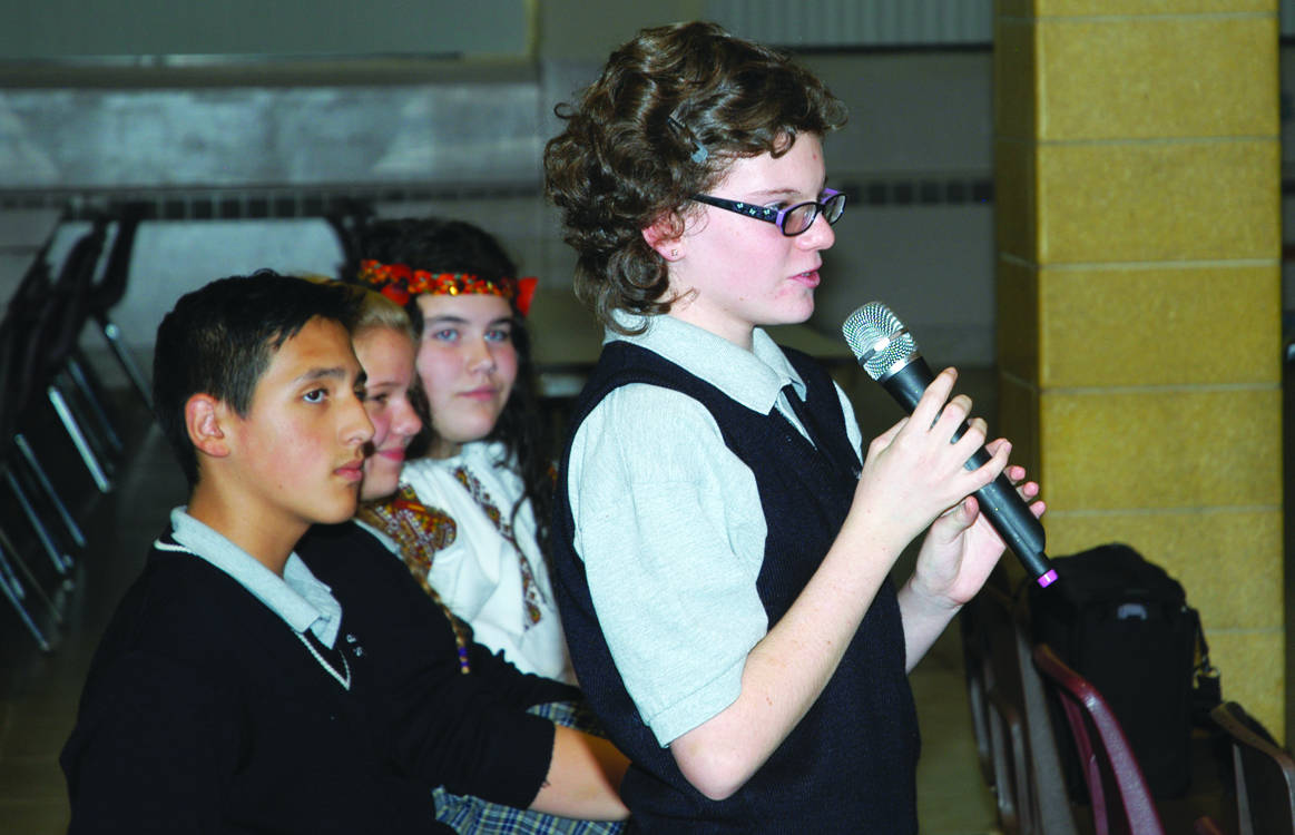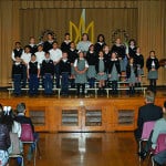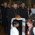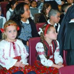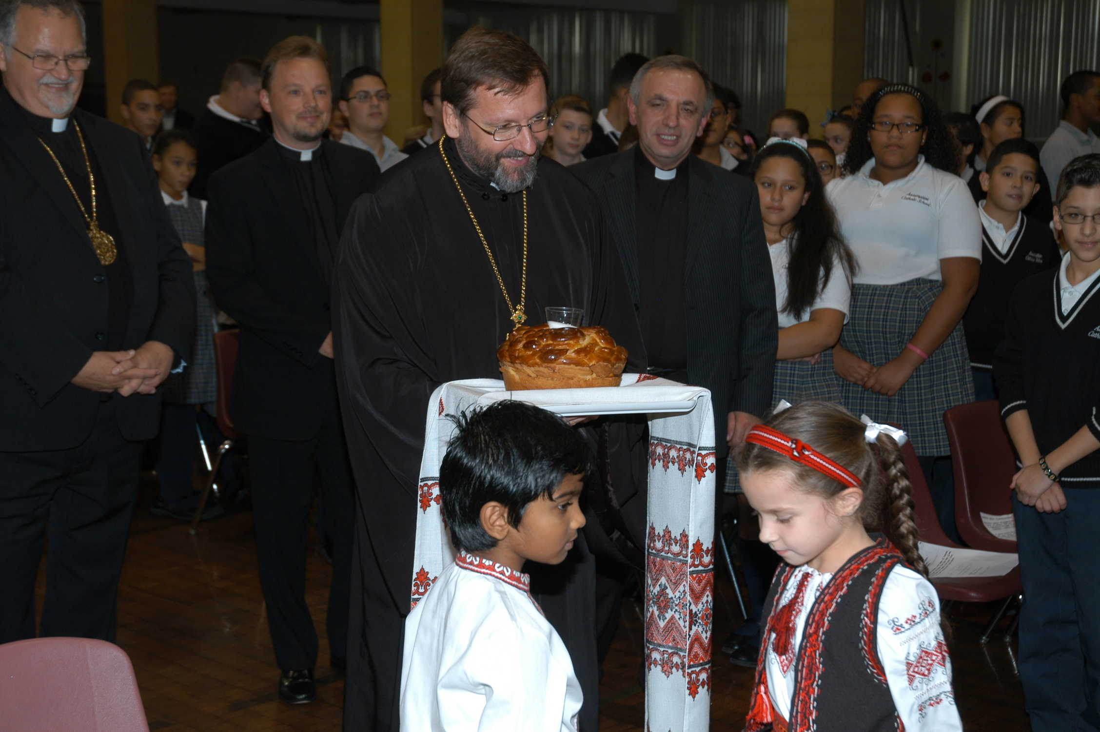 Students from Assumption Catholic School greeted His Beatitude Sviatoslav Shevchuk with gifts of bread, salt and flowers. Bread represents the good in life and salt represents the bitterness in life. Students also gave a brief program which included one song and a recitation of a poem written by Maria Datscko.
