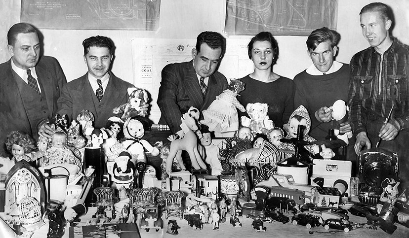 PERTH AMBOY – Rotary Club & WPA distribution of toys and items. The total amount of collected items were 2035. Items included 13 pieces of furniture, 121 games (new), 150 stuffed animals, 75 wooden toys, 50 pairs of underwear, 86 books, 250 mittens, 800 oranges, 300 boxes of candy, 108 mechanical toys, 74 dolls, 8 sleds and wagons. December 23, 1939. Items were distributed to 146 for boys;105 for girls and 54 for families. *Photo Courtesy of Dale Morris. Click on version below to enlarge detail.
