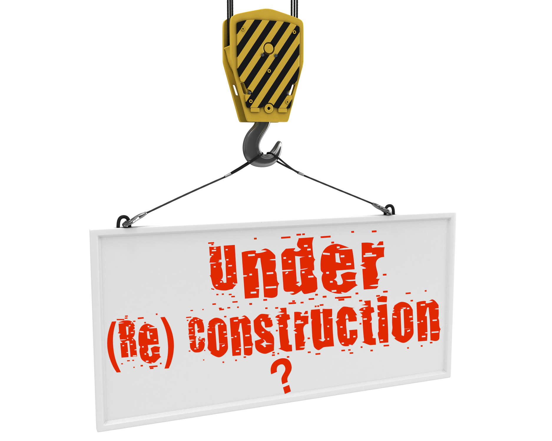 Yellow crane hook lifting white blank plane for text, isolated on white background