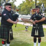 Accompanying the Mayor with the laying of the wreath for fallen Perth Amboy residents Isaias Rivera and Richard Rodriguez were members of the Rodriguez family. The Middlesex County Pipe and Drum Corps played Amazing Grace as the wreath was laid at the monument followed by a 21 Gun Salute and the playing of taps. Michael Perez of the PAFD rang the bell in honor of the Last Call in honor of the fallen firefighters. *Photos by Katherine Massopust, Carolyn Maxwell & Bob Ned