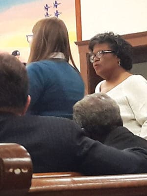 Pastor Amos Dickerson from the St. James AME Zion Church came up to speak. The first thing he did was mention the Bill of Rights banner hanging up the Council Chamber and read the words: “We will be commemorating on March 31 a ceremony of the historic vote in the Council Chambers.” He mentioned 3 proposals, one which included commemorating Thomas Mundy Peterson in City Hall and on the outside. “Where are we on these projects?”