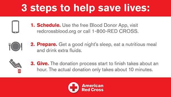 Appointments can be scheduled by downloading the Red Cross Blood Donor App, visiting redcrossblood.org or calling 1-800-RED CROSS (1-800-733-2767).