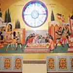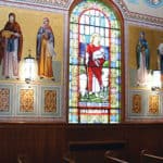 The new church-wide traditional Byzantine iconography is resplendent amidst the totally restored church back to its original form keeping the lights, terrazzo floors and vintage stained-glass windows in the Orthodox motif. Located across from the scenic waterfront along the Raritan River, the artist was moved by the exceptional light and natural beauty of the church’s location. Along with the community’s new priest Rev. Dr. George Parsenios, Assistant Professor of Theology, Princeton University, the community is experiencing a renaissance attracting back prior members and increasing with newer members who recognize a new revitalized spirit of optimism and growth.