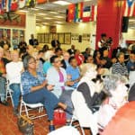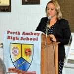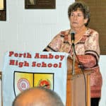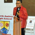 PERTH AMBOY – There was a Dedication Ceremony of a Plaque of Austin E. Gumbs at Perth Amboy High School on 10/19/17. Photo#1 – Mona Shangold was Master of Ceremonies; Photo #2 Milan Zahorcak unveils the plaque; Photo #3 Ellen Nemeth spoke about Austin Gumbs and his accomplishments; Photo #4 – PAHS Principal Mrs. Daisy Rodriguez spoke a few words; Photo #5 – Joycelyn Gumbs Alsup spoke about her father; Photo #6 Watching the Dedication; Photo #7 (LtoR) Ellen Nemeth, Milan Zahorcak, Mona Shangold, Ian Aslup, Joycelyn Gumbs Aslup; Photo #8 Austin Gumbs Plaque