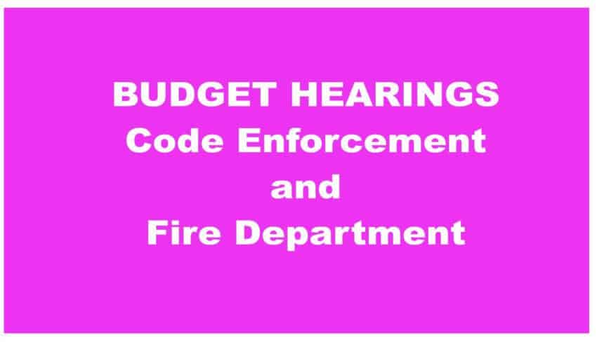 Budget Hearing: Code Enforcement and Fire Department.