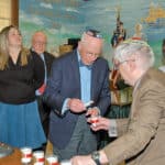 Both brothers then came up to speak, taking turns to tell about their story as young children. Bernard spoke first, “We’ve told our story to our children and our grandchildren. Now, we are telling it to you, our family. This started when we were 7 years old. We saw many crimes to humanity. My father was caught in August of 1942. 1116 people were caught in France. Of that number of people, only 30 survived. We could have been on that convoy. We survived because of the kindness through Gentiles and our mother.”