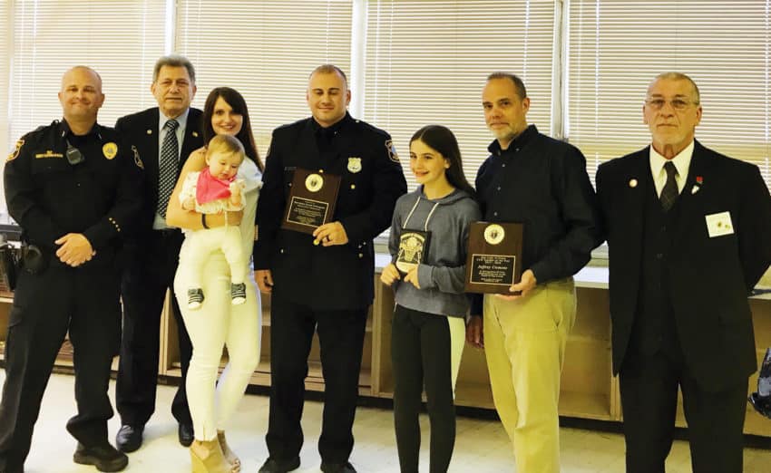 FORDS – Our Lady of Peace Council 9199 of Fords presented their annual Shield Awards to an Edison police officer and an Edison Fireman. Patrolman Joseph De Pasquale was honored for his service to the community. Lt. Michael Mintchwarner, Joseph’s supervisor stated that approximately 15% of the officers go “Above and Beyond” the call of duty in service to the community. Lt. Mintchwarner commended patrolman De Pasquale for constantly being in the 15% and going above and beyond to serve and protect the residents of the community. Captain Andrew Toth, Jr was the Edison Fireman honored by the Knights, but he wasn’t available to receive his award.