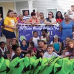 40 colorful backpacks donated by the Kiwanis Club were distributed to the children of Willow Pond Village.