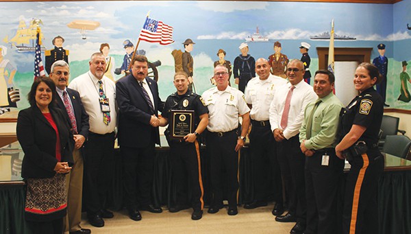 PERTH AMBOY – Mayor Diaz and the Perth Amboy Police Department honor Police Officer Kyle Savoia who saved a man who was just moments away from being struck by a moving train on Thursday, July 19, 2018. This rescue was aided by PST Janet Torres and PST Brian Donnelly, who notified NJ Transit Police immediately upon receipt of the call, allowing NJ Transit to slow down the incoming train.