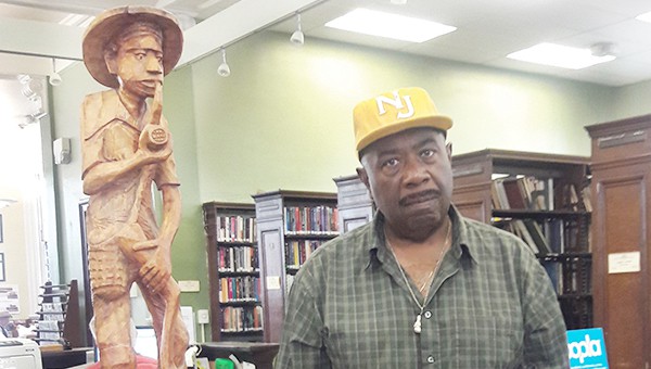 PERTH AMBOY – Ausby Blue has been a Collector of Antiques for over 25 yrs. He is looking for any information pertaining to this statue (standing on desk in library) that a customer gave to him. Mr. Blue was employed by the J. Goldberg Company for 30 yrs.