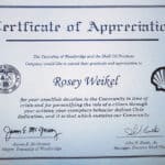 In 1993, Rosie was honored with the Honorama Life Member Award. This award has only been given out 38 times in the whole world.