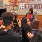 - Mayor Diaz speaks to the students in her office