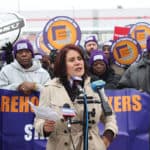 Recent employees from Target’s Perth Amboy, New Jersey warehouse facility; Perth Amboy Mayor Wilda Diaz; members and leaders of Warehouse Workers Stand Up; members and leaders of the Laundry, Distribution, and Food Service Joint Board, Workers United/SEIU, a labor union that organizes and represents warehouse workers in New Jersey.