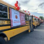 In addition to PAPD and PAFD, Perth Amboy Public School district buses joined the parade with Class of 2020 banners and balloons displayed on the sides. A video truck also accompanied the parade looping a senior class slideshow of pictures throughout the 2019-2020 school year.