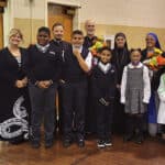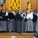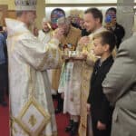 After the liturgy, there was a reception at Assumption Catholic School cafeteria prepared by parishioners and ladies from the Ukrainian National Women’s League of America (UNWLA) Branch 135. Assumption Catholic School Principal Mrs. Lissette Shumny and several school children presented Archbishop Borys, Rev. Ivan Turyk, Mother Mary, and Sister Veronica with flowers and a song.