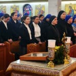 At the end of the divine liturgy, Archbishop Borys blessed Sister Veronica a Superior of the convent in Perth Amboy, NJ, and Sister Maria for the beginning of their ministry in Perth Amboy. The nuns in attendance sang the prayer, “Hail Mary,” in Old Slavonic.