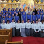 Archbishop Borys Gudziak, Rev. Ivan Turyk, celebrated the divine liturgy with the assistance of Deacon Paul Makar, Deacon Volodymyr Radko, and several altar boys. In attendance at the service were over 55 nuns including Mother Mary of the Immaculate Conception Ambriogio, Provincial Superior of the Sisters Servants of the Lord and the Virgin of Matara SSVM and Sister Veronica who will begin their ministry at the parish. Members of the parish welcomed the archbishop and the visiting sisters. The sisters come from all over the world to join their order. They are Latin Rite and wear blue and grey. These two different colors signify Jesus as both divine (blue) and his humanity (grey). Sister Veronica and Sister Maria wear the black habits because they belong to Byzantine Rite branch of the order.