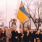 PERTH AMBOY — Raising of the Ukrainian Flag in City Hall Circle circa 1950’s *Photo courtesy of Helen Tulys This Photo was restored under a grant for the Kearny Cottage Archiving project by the Middlesex Cultural and Heritage Commission